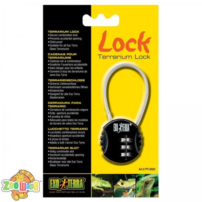 Інформація про товар- Кодовий замок- Запобігає випадковому відчиненню тераріуму- Захист від дітей- Сумісний з усіма скляними тераріумами Exo Terra
