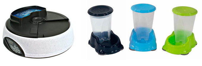Пластиковый вариант миски является одним из наиболее дешевых, однако далеко не самым безвредным и функциональным. Пожалуй, наиболее удачным применением пластика в производстве посуды для домашних животных являются автокормушки и миски со стаканом-дозатором. Автокормушки получил широкую популярность среди тех владельцев собак и кошек, которые часто бывают в отъезде и оставляют своего питомца одного дома. Автокормушки программируются на предоставление питомцу доступа к еде через определенное время на установленный промежуток времени (к примеру, зачастую можно установить, что автокормушка будет открываться каждые 6 часов на 10 минут).
