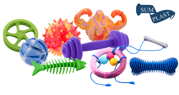 Игрушки Sum Plast, в основном, предназначены для использования собаками. Выполненные из специального термопластичного материала, они являются долговечными, красивыми, удобными и безвредными для животного. Данные игрушки сохраняют свой внешний вид в диапазоне температур от -40° С до 60° С. Игрушки имеют различную форму: кости, мячи, гантели, грейферы, апорты, диски, кольца, а также могут быть необычной формы (инопланетянин, чеснок, луковка, рыбка, колесо). У некоторых видов игрушек имеются модификации, предназначенные для осуществления массажа десен в процессе игр и/или дрессировок. Помимо прочего, все игрушки имеют специфический приятный для человека и собаки запах, который стимулирует животное к активному использованию игрушек.