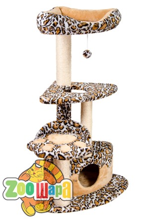 Третий ярус, установленный на столбике-когтеточке с сизалевой обмоткой, изготовлен в форме лежака с мягкими бортиками и дном, на котором будет так приятно отдыхать вашему любимцу.