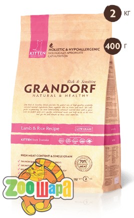 Сухой низкозерновой высокоусвояемый корм класса холистик Grandorf Kitten с мясом ягненка и рисом разработан для удовлетворения всех потребностей в питании котят всех пород возрастом от 3 недель, беременных и кормящих кошек. Уникальная гипоалергенная формула с комплексом натуральных антиоксидантов SYNOX 3D способствует гармоничному, здоровому развитию пушистого малыша. Содержит 70% натурального мяса. Не содержит красители, искусственные ароматизаторы и ГМО.