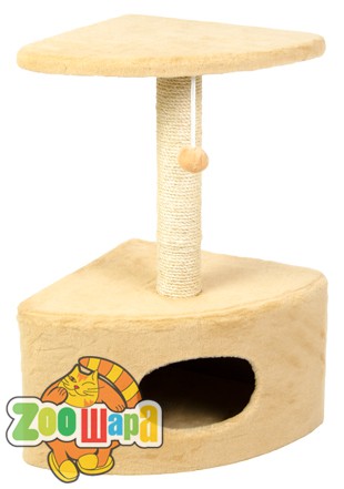 Угловая дряпка-домик занимает немного места, устойчива и больше похожа на оригинальный элемент интерьера, чем на когтеточку для кота. В домике кот сможет укрыться от суеты, спать в прохладную погоду. В остальное время любимцы предпочитают царственно восседать на площадке, надежно закрепленной на столбике-дряпке. Приятное дополнение – пушистый помпон на шнурке, который очень понравится как котятам, так и энергичным взрослым животным. Помпон будет для них прекрасным развлечением в то время, когда вы заняты.