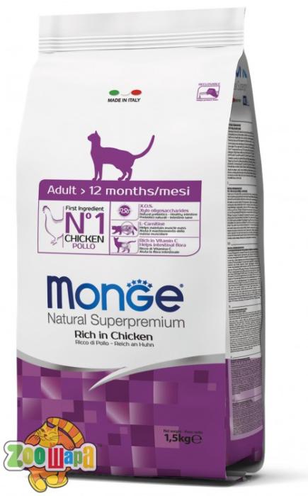 MONGE SUPERPREMIUM CAT ADULT – это полноценный сбалансированный рацион для взрослых кошек в возрасте от 1 года до 7 лет. Высокий уровень белка в составе корма и содержание в нем L-карнитина позволяет кошке долгие годы сохранять активность и хорошую физическую форму. Содержит важнейшие антиоксиданты, такие как витамин Е, для поддержания иммунной системы.