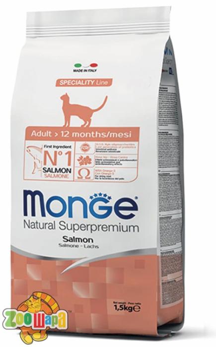 Monge Natural Superpremium Adult Cat Salmon – полноценный и сбалансированный корм для взрослых кошек.
