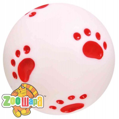 - Мяч с пищалкой (резина) 7 см, красн+следы лап (34862), (1111120296)