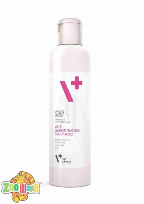 Склад Вода, кокамідопропіл-бетаїн, децилглюкозид, ПЕГ-90 гліцерилізостеарат, лаурет-2, гліцерин, полісорбат 20, саліцилова кислота, пантенол, пропіленгліколь, глюконат цинку, піридоксину гідрохлорид, піроктоноламін, алантоїн, нітрат магнію, метілхлорізотіазолінон, метілізотіазолінон, триетаноламін, лляна олія. Спосіб застосування: Змочіть шерсть теплою водою, нанесіть невелику кількість шампуню на шерсть, масажними рухами протягом близько 5 хв до появи піни. Захистіть очі та вуха від потрапляння шампуню. Ретельно промийте. Повторіть за необхідності. Вид тварини: Собака, Кіт/Кішка Виробник: VetExpert Польща