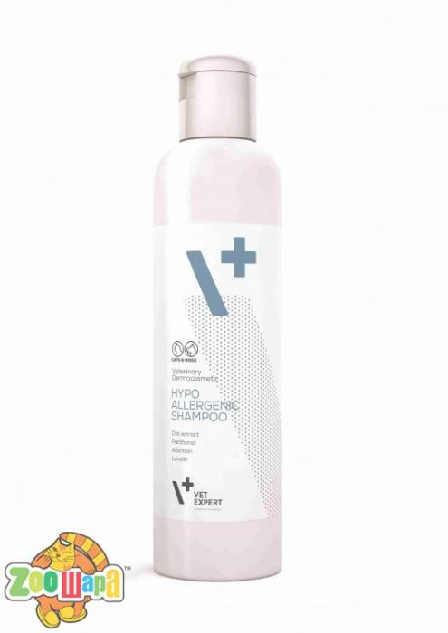 Шамп. ГІПОАЛЕРГЕН (250 мл) алергія, сухість, непероносимість Дерматокосметичний шампунь з вівсяних білків для тварин із чутливою шкірою, схильною до подразнення, алергії та надмірної сухості. Рекомендується при непереносимості інших шампунів. Він може безпечно використовуватися для тварин у період зростання. • Містить дуже ніжні поверхнево-активні та пом’якшувальні речовини, а також ряд інших пом’якшуючих і зволожувальних агентів. • Вівсяні білки легко засвоюються, що допомагає зберегти шкіру зволоженою, а шерсть - сяючою. • Алантоїн має заспокійливу та регенеруючу дію. • Пантенол прискорює регенерацію та стимулює загоєння ураженої шкіри. Склад Вода, натрію лаурилсаркозінат, кокамідопропілбетаїн, ПЕГ-90 гліцерилізостеарат, гліцерин, пантенол, полісорбат 20, сік листя алое, алантоїн, кератин, гідролізований кератин, екстракт зерна вівса, ланолін, лаурет-2, хлорид натрію, нітрат натрію, метілхлорізотіазолінон, метілізотіазолінон, феноксиетанол, натрію бензоат, калію сорбат, лимонна кислота, ВНТ, ароматизатор. Спосіб застосування: Змочіть шерсть теплою водою, нанесіть на шерсть невелику кількість шампуню, спіньте, масажуйте приблизно 5 хв. Захистити очі та вуха від потрапляння шампуню; ретельно змийте. Повторіть за необхідності. Вид тварини: Собака, Кіт/Кішка Виробник: VetExpert Польща