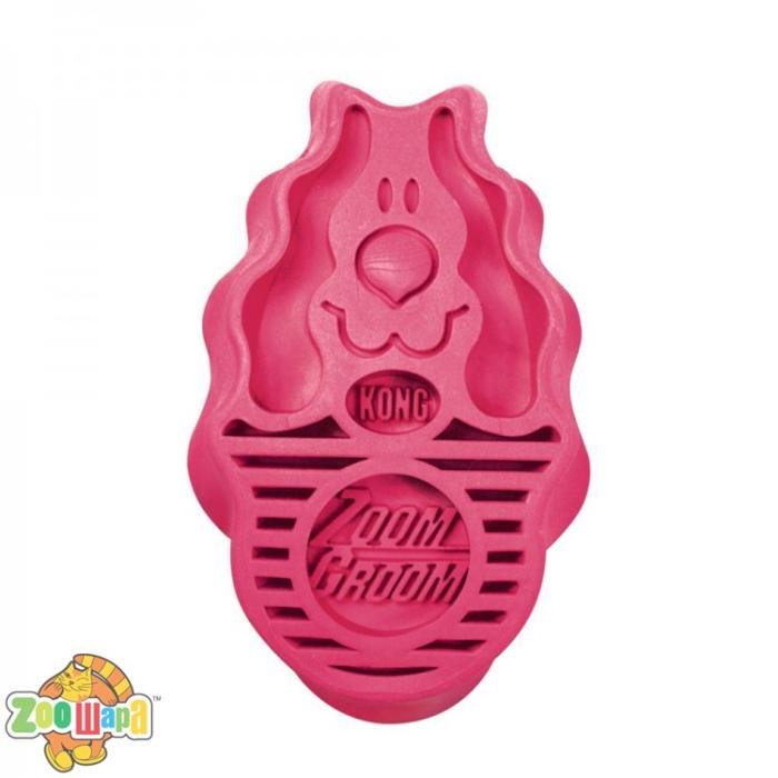 Щітка KONG Zoomgroom™ Raspberry для котів рожева Іграшка для собак KONG ZoomGroom ™ допомагає полегшити розчісування собаки. Під час миття шампунем використовуйте ZoomGroom ™ для очищення шерсті вашого улюбленця. Гумові щетинки розміром 3/4 дюйми проникають через шерсть, масажують шкіру і стимулюють капіляри та вироблення природного жиру, що допомагає підтримувати шерсть вашого собаки здоровою.