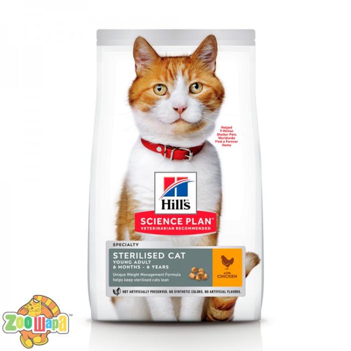 SP Fel Young Adult Sterilised Cat Ch-Молода доросла стериліз.кiшка/курка- 3 кг NEW Сухий корм HILL’S SCIENCE PLAN Sterilised Cat Young Adult містить унікальну формулу для контролю ваги тіла, яка допоможе вашій стерилізованій кішці залишатися стрункою. Виготовлений з високоякісних і легкозасвоюваних інгредієнтів.