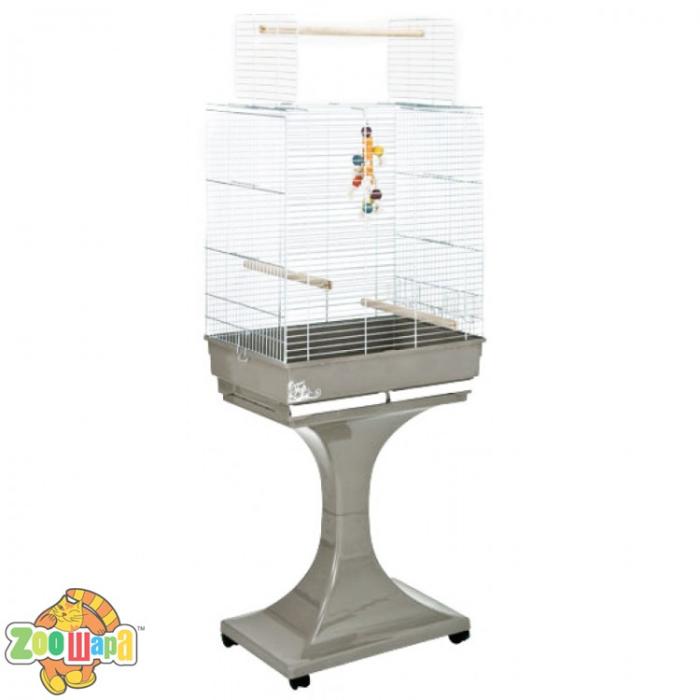 - Клетка SORAYA с подставкой 66х45х81 на подставке с колесиками для крупных и средних попугаев. Прямоугольная форма – высота с подставкой 155 см-это очень важно, птица должна быть повыше. Сверху открываются дверцы и можно дополнительно установить жердочку. Разборная конструкция, в комплекте 2 автоматические, кормушки, 2 жердочки. Удобная смена поддона.