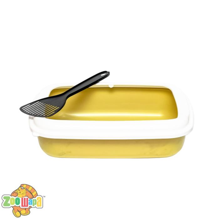 Туалет прямокутної форми з рамкою для котів. Виготовлений з високоякісного нетоксичного пластика, який легко миється і не вбирає запахів. Завдяки практичній формі,відмінно впишеться в будь-який інтер'єр. В асортименті 4 кольори. - білий/ червоний; - білий/жовтий; - білий/блакитний; - білий/синій. Пластик 38x28x10,5 см