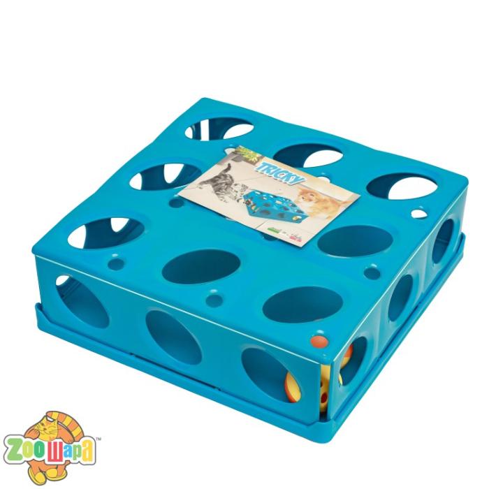 Інтерактивна іграшка з кулькою, яка за допомогою спеціальних отворів для лап стимулює котика до різноманітних дій, щоб поганяти м'ячик. Виготовлена із високоякісного нейлону. 3 кольори асорті. - Блакитний; - Сірий; - Синій. 25x25x9 см