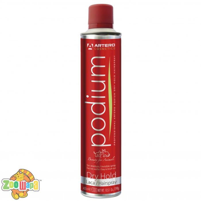 Засіб не залишає слідів, непомітний на дотик і легко видаляється щіткою чи звичайним гребнем. При цьому лак не обтяжує та не склеює шерсть, надаючи їй природного блиску й приємного аромату. Укладка за допомогою Podium Dry Hold виглядає природно й не боїться активних рухів тварини.