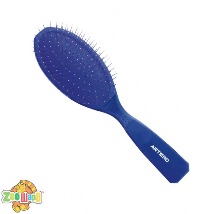 Прогумована м'яка основа з універсально розташованими металевими зубчиками дозволяє делікатно розчесати сплутану шерсть не пошкоджуючи її.