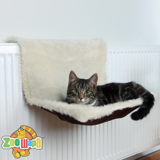 Удобный и мягкий подвесной гамак для кошек. Оснащен надежной металлической рамой с регулируемым держателем 9-12 см. Крепиться на все стандартные виды радиаторов. Материал - длинношерстный плюш, полиэстер. Размеры - 45х26х31 см. Цвет - кремовый с коричневой отделкой.