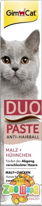 Паста GimCat Дуо для виведення шерсті - це корисні ласощі для вашого кота. Ідеальна комбінація з апетитною курки і натурального ароматного солоду не тільки сприяє природному виходу шерсті, а й перетворює цю пасту в істинний делікатес. Без додавання цукру.