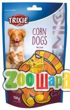 Ласощі для собак Trixie "PREMIO Corn Dogs" качка 100 гр від німецького бренду Trixie – це продукт, гармонічно комбінующий в собі смакові якості і корисні речовини. Зроблений з натуральних компонентів, продукт наповнить організм улюбленця білками, жирами, протеїном, годуючи при цьому, порцією смачної їжі.