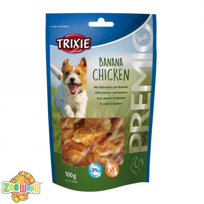 Ласощі для собак Trixie PREMIO Banana&Chicken 100 г (курка та банан) від німецького бренду Trixie – це продукт, гармонічно комбінующий в собі смакові якості і корисні речовини. Зроблений з натуральних компонентів, продукт наповнить організм улюбленця білками, жирами, мінералами, годуючи при цьому, порцією смачної їжі.