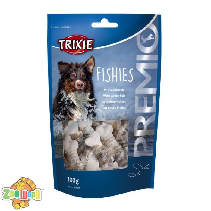 Ласощі для собак Trixie PREMIO Fishies 100 г (риба) чистять ротову порожнину від мікробів, сприяють укріпленню зубів і ясен, склад продукту наповнить організм пса енергією, дозволяючи йому більше часу грати і тренуватися, що позитивно вплине на його самопочуття. Продукт не містить барвників, консервантів і ароматизаторів.