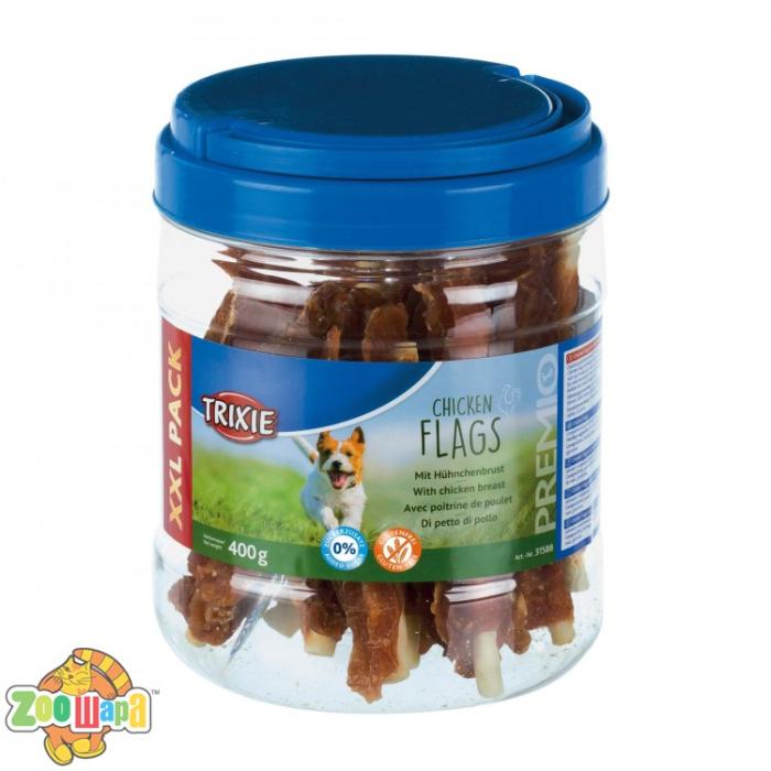 Ласощі для собак Trixie PREMIO Chicken Flags 400 г (качка) чистять ротову порожнину від мікробів, сприяють укріпленню зубів і ясен, склад продукту наповнить організм пса силами, дозволяючи йому більше часу грати і розважатись, що позитивно вплине на його настрій. Продукт не містить барвників, консервантів і ароматизаторів.