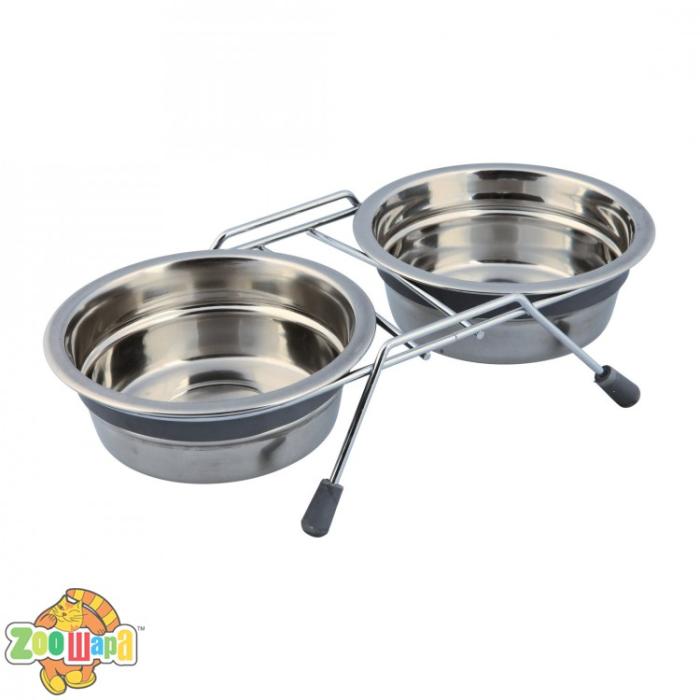 Миски металеві на підставці Trixie з шумовими заглушками «Eat on Feet» 2 x 450 мл / 13 см - розробка знаменитого німецького бренду товарів для тварин Trixie, яка стане прекрасним доповненням для турботи про вихованця. Дана підставка під миски додасть комфорту для годування вашого вихованця. З підставками менше можливості забруднити підлогу під кормом, завдяки регулюванню висоти, тварині не доведеться нахиляться, а для вихованців, які страждають захворюваннями шиї або спини, це стане справжнім порятунком. Завдяки тому, що миска піднята над землею, вихованець витрачає менше сил на споживання їжі, захоплюючи меншу кількість повітря, внаслідок чого і газоутворення знижується. Підставки під миски - ідеальний варіант не тільки для літніх і хворих тварин, а й в принципі для будь-якого вихованця, адже підставки збережуть здоров'я тварини і чистоту в будинку!