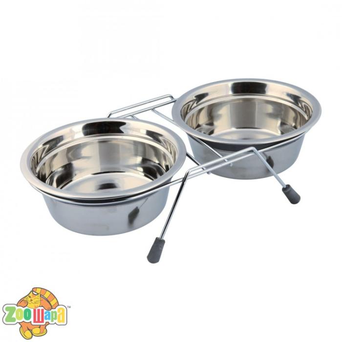 Миски металеві на підставці Trixie з шумовими заглушками «Eat on Feet» 2 x 900 мл / 16 см - розробка відомого німецького бренду товарів для тварин Trixie, яка стане прекрасним доповненням для турботи про вихованця. Дана підставка під миски додасть комфорту для годування вашого вихованця. З підставками менше можливості забруднити підлогу під їжею, завдяки регулюванню висоти, тварині не доведеться нахиляться, а для вихованців, які страждають захворюваннями шиї або спини, це стане справжнім порятунком. Завдяки тому, що миска піднята над землею, вихованець витрачає менше сил на споживання їжі, захоплюючи меншу кількість повітря, внаслідок чого і газоутворення знижується. Підставки під миски - ідеальний варіант не тільки для літніх і хворих тварин, а й в принципі для будь-якого вихованця, адже підставки збережуть здоров'я тварини і чистоту в будинку!