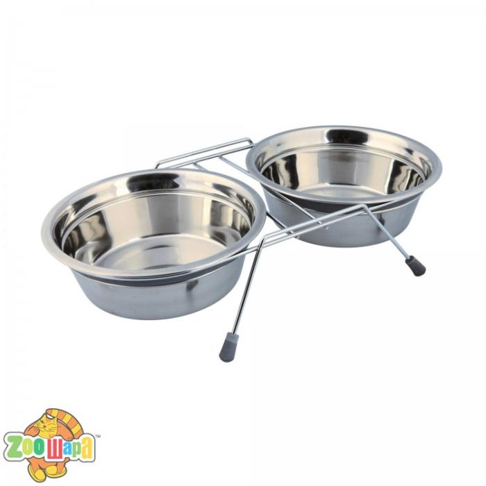 Миски металеві на підставці Trixie з шумовими заглушками «Eat on Feet» 2 x 1.5 л / 21 см - розробка відомого німецького бренду товарів для тварин Trixie, яка стане прекрасним доповненням для турботи про вихованця. Дана підставка під миски додасть комфорту для годування вашого вихованця. З підставками менше можливості забруднити підлогу під їжею, завдяки регулюванню висоти, тварині не доведеться нахиляться, а для вихованців, які страждають захворюваннями шиї або спини, це стане справжнім порятунком. Завдяки тому, що миска піднята над землею, вихованець витрачає менше сил на споживання їжі, захоплюючи меншу кількість повітря, внаслідок чого і газоутворення знижується. Підставки під миски - ідеальний варіант не тільки для літніх і хворих тварин, а й в принципі для будь-якого вихованця, адже підставки збережуть здоров'я тварини і чистоту в будинку!