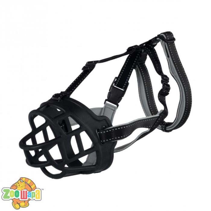 • силікон / нейлон / неопрен• дозволяє вільно дихати, пити воду і їсти ласощі• дуже зручно носити завдяки ергономічній посадці, еластичного і стійкого за формою силікону, та неопренових ремінців в області морди і шиї• потрійне кріплення• плавно регулюється на шиї і потилиці• зі світловідбиваючими елементами• колір: чорний