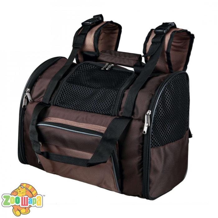 Рюкзак-переноска Trixie «Shiva» 41 x 30 x 21 см (коричнева) - це розробка знаменитого німецького виробника товарів для тварин Trixie, яка призначена для транспортування вихованців в поїздках. Вихованці часто погано реагують на будь-якого роду переїзди, а це безпосередньо впливає на їх здоров'я. Структура переноски забезпечить вихованцеві максимальний комфорт, а хороша вентиляція дозволить зберегти самопочуття вихованця на високому рівні. Основні переваги переноски: - Надійні кріплення - Зручна ручка - Зроблено з високоякісних матеріалів - Хороші умови для вихованця - Підходить для всіх порід - Відмінно убезпечить вихованця Така переноска допоможе вихованцеві забути про всі труднощі переїзду, він буде надійно захищений від навколишнього світу, а комфортні умови перетворять довгу дорогу в відпочинок! Характеристики: • високоякісний надміцний поліестер• може використовуватися як рюкзак і як переноска• з м'якою підкладкою• відкривається спереду і збоку• плечові і поясні ремені плавно регулюються• анатомічна форма плечових ременів з кишенькою для мобільного телефону• з двома додатковими передніми кишенями• зі світловідбиваючими елементами• з коротким повідцем для безпеки• сітчасті вставки для оптимальної циркуляції повітря• з нейлоновим ременем для кріплення до візка• знімне дно на м'якій підкладці• колір: коричневий / бежевий• до 8 кг