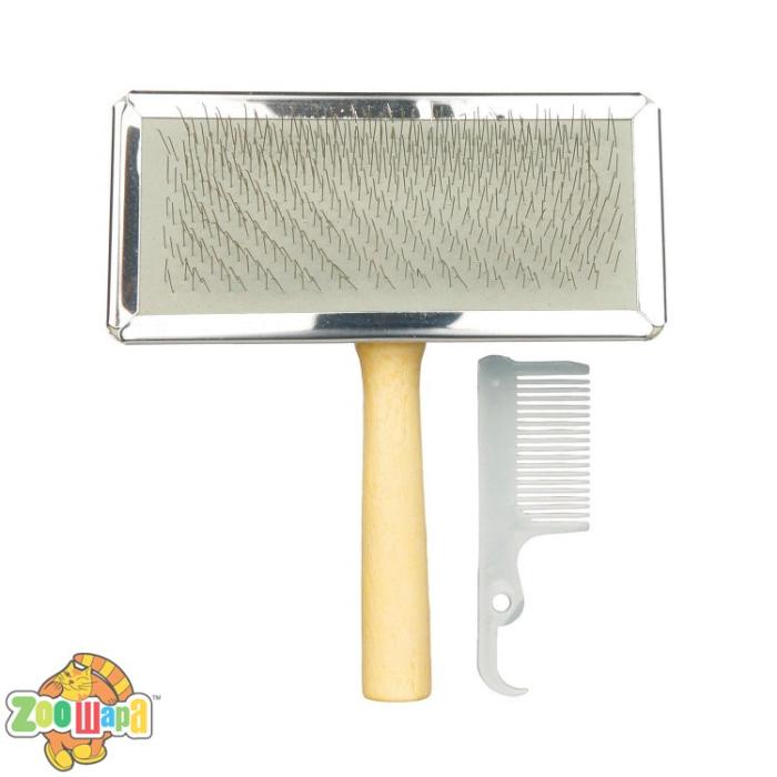 Німецький виробник товарів для тварин Trixie пропонує вам Щітка-пуходерка з дерев'яною ручкою та пластиковий гребінець Trixie 11 см / 14 см, набір.