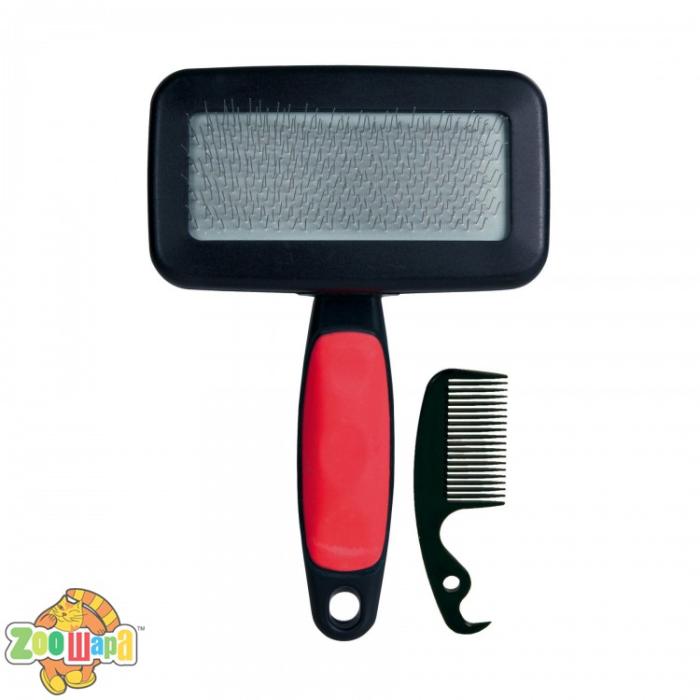Німецький бренд товарів для тварин Trixie пропонує вам Щітка-пуходерка з пластиковою ручкою та пластиковий гребінець Trixie 10 см / 13 см, набір.