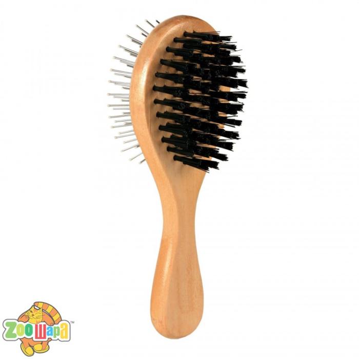 Німецький виробник товарів для тварин Trixie пропонує вам Гребінець-щітка Trixie дерев'яний двосторонній круглий 5 см / 17 см.
