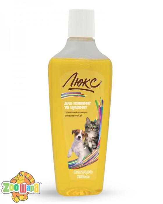 Гігієнічний шампунь для кошенят та цуценят має репелентну дію проти бліх, кліщів та інших ектопаразитів. Репелентний ефект досягається завдяки вмісту рослинних екстрактів: чемериці, полину, багульника. Завдяки екстракту кореня оману та ромашки, що входять до складу унікальної формули, шампунь Усуває подразнення шкіри, сприяє швидкому загоєнню невеликих подряпин після розчосів, шерсть стає блискучою та доглянутою.