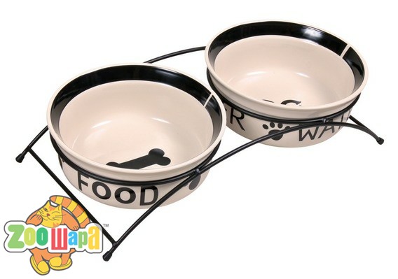 Металлический стояк с двумя керамическими мисками: