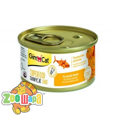 Shiny Cat SUPERFOOD k 70g тунець та гарбуз – незамінний вологий корм для дорослих котів, в якому поєднані ніжні соковиті шматочки апетитного тунцю, гарбуза, з додаванням смачного бульйону та рису. При виготовленні корму використовуються найякісніші сорти риби, стиглі овочі, завдяки використанню новітніх технологій дозволяється зберегти натуральність та корисність всіх компонентів корму. Продукт збагачений таурином, вітаміном Е, мінеральними речовинами, повністю готовий до вживання, застосовується в якості харчової добавки до основного раціону котів. При вживанні тварини повинні мати постійний доступ до питної води. Shiny Cat SUPERFOOD k 70g тунець та гарбуз – незамінний вологий корм для дорослих котів, в якому поєднані ніжні соковиті шматочки апетитного тунцю, гарбуза, з додаванням смачного бульйону та рису. При виготовленні корму використовуються найякісніші сорти риби, стиглі овочі, завдяки використанню новітніх технологій дозволяється зберегти натуральність та корисність всіх компонентів корму. Продукт збагачений таурином, вітаміном Е, мінеральними речовинами, повністю готовий до вживання, застосовується в якості харчової добавки до основного раціону котів. При вживанні тварини повинні мати постійний доступ до питної води.