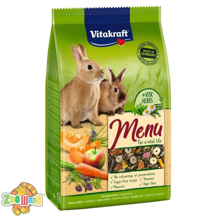 Меню Vital для дорослих кроликів є збалансованим раціоном, в складі якого Ваш вихованець знайдете все необхідне для свого здорового і тривалого життя. Корм містить люцерну, багату на волокна, ароматні яблука, корисні злаки, смачні овочі. Всі необхідні Вітаміни, мінерали та мікроелементи сприяють відмінному стану Вашого кролика.