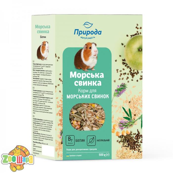 Рецептура корму «Морська свинка + біотин» розроблена на основі рекомендацій провідних фахівців з розведення гризунів. Повноцінний вітамінізований корм призначений для щоденного годування морських свинок та інших середніх гризунів. Дріжджові культури у складі корму нормалізують травлення та збагачують раціон улюбленця вітамінами групи В та біотином. Це позитивно впливає на якість шерсті, підвищує імунітет, покращує загальний стан здоров’я гризуна. Застосування: годувати 2-3 рази на день невеликими порціями. Корм кожного разу насипати у чисту суху годівничку. Обов'язково в поїлці повинна бути свіжа вода.