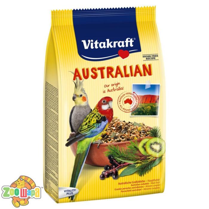 Склад корму відповідає раціону птаха у природному середовищі. Батьківщиною багатьох великих птахів є Австралія, тому корм містить суміш таких інгредієнтів, як ківі, евкаліпт, бузина, насіння лугових трав. Крім основних інгредієнтів, корм містить вітаміни й інші поживні речовини, які необхідні великим птахам для здорового способу життя.