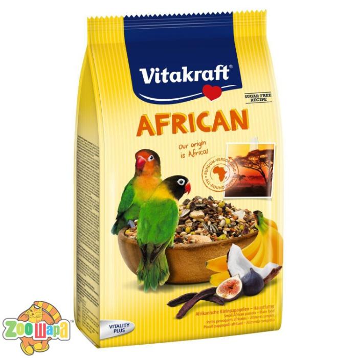 Склад корму відповідає раціону птаха у природному середовищі. Рекомендований для птахів родом з Африки, тому корм містить суміш таких інгредієнтів, як інжир, банан, кокос. Окрім основних інгредієнтів, корм містить вітаміни й інші поживні речовини, які необхідні птахам для здорового способу життя.