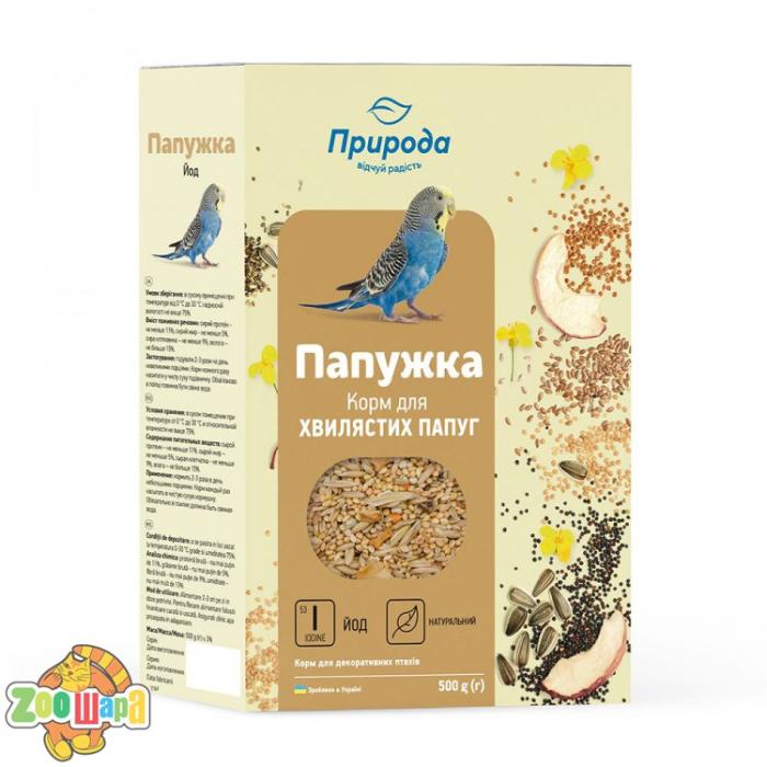 Рецептура корму «Папужка. Йод» розроблена на основі рекомендацій провідних фахівців з розведення та утримання декоративних птахів. Суміш зерен, насіння та сухофруктів культур відповідає раціону птахів у природних умовах. Регулярне вживання корму дозволяє уникнути авітамінозу, неправильної або затяжної линьки, забезпечує птахам хорошу кондицію. Йод, що міститься у вівсі та інших інгредієнтах корму, нормалізує обмін речовин, допомагає уникнути розладів, пов’язаних з утриманням птахів у клітці. Не забувайте додавати до раціону вашого улюбленця свіжі овочі та фрукти, а також крейду, мінерали та ласощі ТМ «Природа».Склад: просо червоне, просо жовте, овес голозерний, канаркове насіння, просо чорне, насіння льону, насіння конопель, насіння соняшника, ріпак, яблука сушені гранульовані, сорго