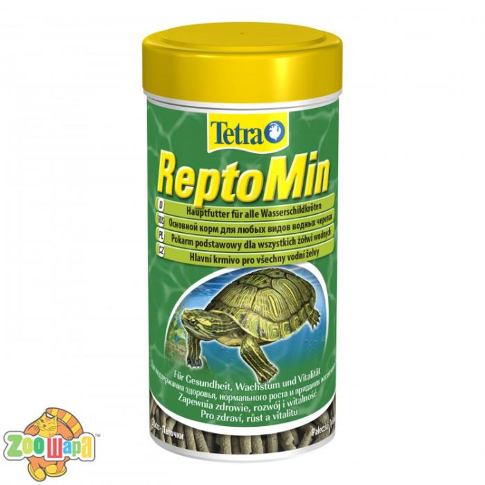 Tetra ReptoMin – це корм для всіх видів черепах, який виготовлено у формі гранул. Корм дуже поживний та корисний, містить всі речовини, які потрібні черепахам для активного та здорового життя. У складі цього корму біологічно збалансовано протеїни, жири та клітковину. Крім того, його збагачено вітамінами та мінералами у концентраціях, необхідних черепахам. Для виготовлення продукту використовуються лише природні компоненти, в яких, завдяки новітнім технологіям, вдалося зберегти всі корисні речовини. Корм підходить для використання кожного дня. Він пройшов клінічні дослідження і відповідає міжнародним стандартам якості.Особливості корму:• Здоровий панцир і міцні кістки завдяки оптимальному співвідношенню кальцію та фосфору• Спеціальна форма паличок у вигляді черв'яків забезпечує оптимальне поглинання корму різними видами черепах• Зменшує неприємні запахи в акваріумі/тераріумі завдяки формулі з екстрактом юкки• Дуже добре перетравлюється, забезпечуючи чистоту води