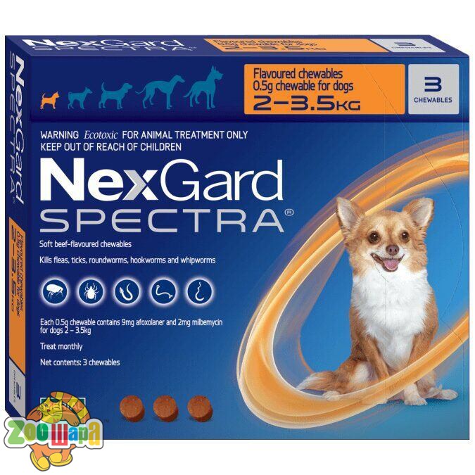 Merial НЕКСГАРД СПЕКТРА 2-3,5кг (XS) 1уп( 3 таблетки) для собак (инсектоакарицид,антигельминтик)