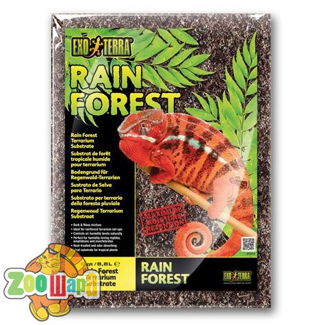 Exo Terra Rain Forest - це 100% натуральний боірозкладний субстрат для рептилій, виготовлений із сосни приморської і моху Сфагнум. Rain Forest Terrarium Substrate - ідеальний декоративний субстрат для створення природних тераріумів з вологолюбними рептиліями, амфібіями чи безхребетними з тропічних лісів.