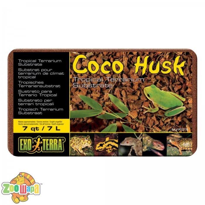 Субстрат Exo Terra Coco Husk виготовлений із шматочків кокосового волокна, вирощених на плантаціях тропічної Азії. Цей екологічний субстрат ідеально підходить для підтримки вологості в тераріумі і абсолютно безпечний для жаб, саламандр, а також для риючих та норних тварин.
