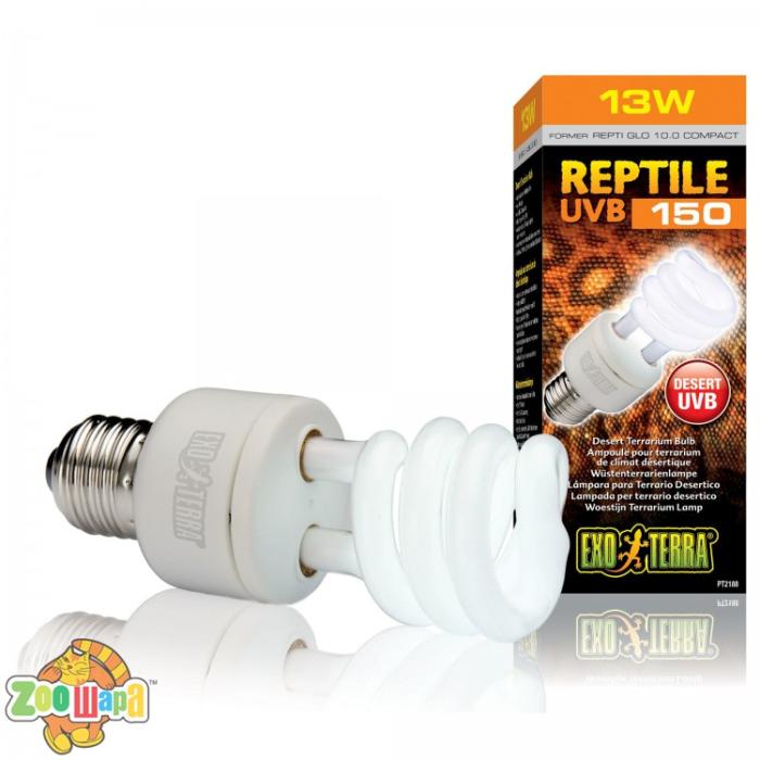 Лампа Exo Terra Reptile UVB 150 має дуже високий рівень ультрафіолетового випромінювання (UVB), характерний для пустельних місцепроживань.