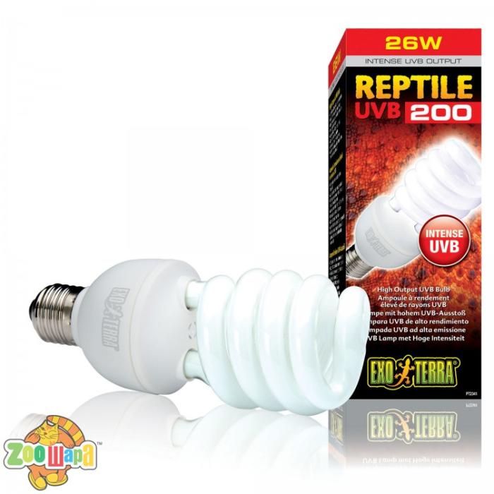 Лампа Exo Terra Reptile UVB 200 випромінює надпотужні потоки ультрафіолету, наближаючи середовище проживання до природного, стимулюючи фотосинтез вітаміну D3.