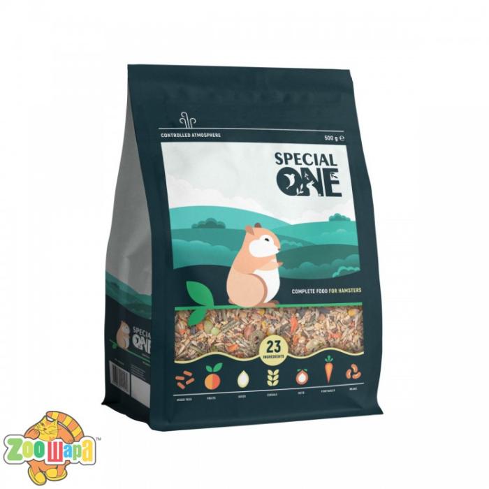 Корм имеет уникальный состав, включает отборное зерно, семена, фрукты, орехи и другие ингредиенты из природного ареала обитания хомяков. В состав рациона вошло 24 ингредиента, среди которых семена, сушеные фрукты, овощи, а также редкие деликатесы - маш, кунжут черный, арахис, кэроб. В состав корма включены ингредиенты, которые удовлетворяют потребность организма в белках, минеральных веществах, укрепляют кости и мышцы, улучшают внешний вид животных.