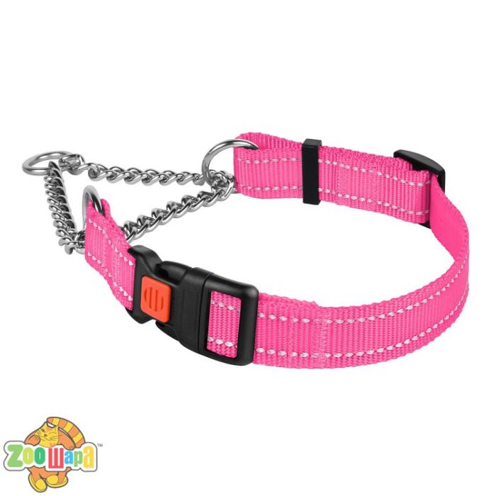 Нейлоновый ошейник мартингейл со светоотражением для собак ТМ BronzeDog легкий, прочный и надежный.