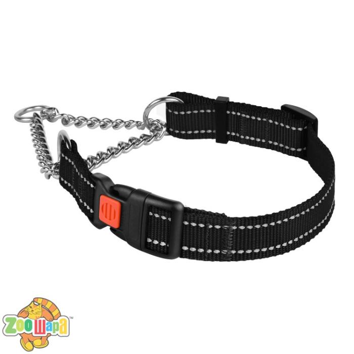 Нейлоновый ошейник мартингейл со светоотражением для собак ТМ BronzeDog легкий, прочный и надежный.