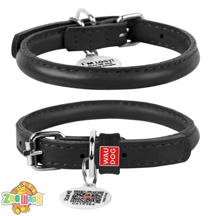 Ошейник для собак кожаный WAUDOG Glamour с QR паспортом, круглый, XS, Д 8 мм, Дл 20-25 см. Черный (22401) .